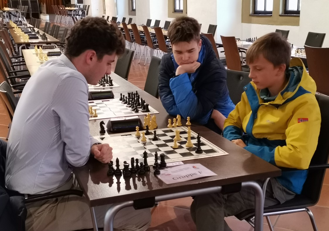 Fotogalerie ... auf den Spuren von - Christian Ramisch - 18. Oktober2025Dinkelsbühl / Großer SchrannensaalDeutsche Schnellschach-Amateurmeisterschaft (DSSAM) 2025Die drei Dinkelsbühler Jugendlichen bei der Turniervorbereitung.