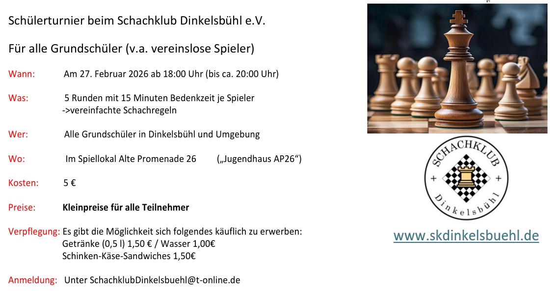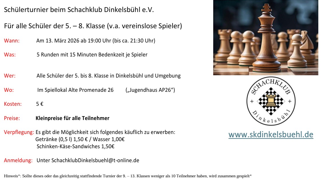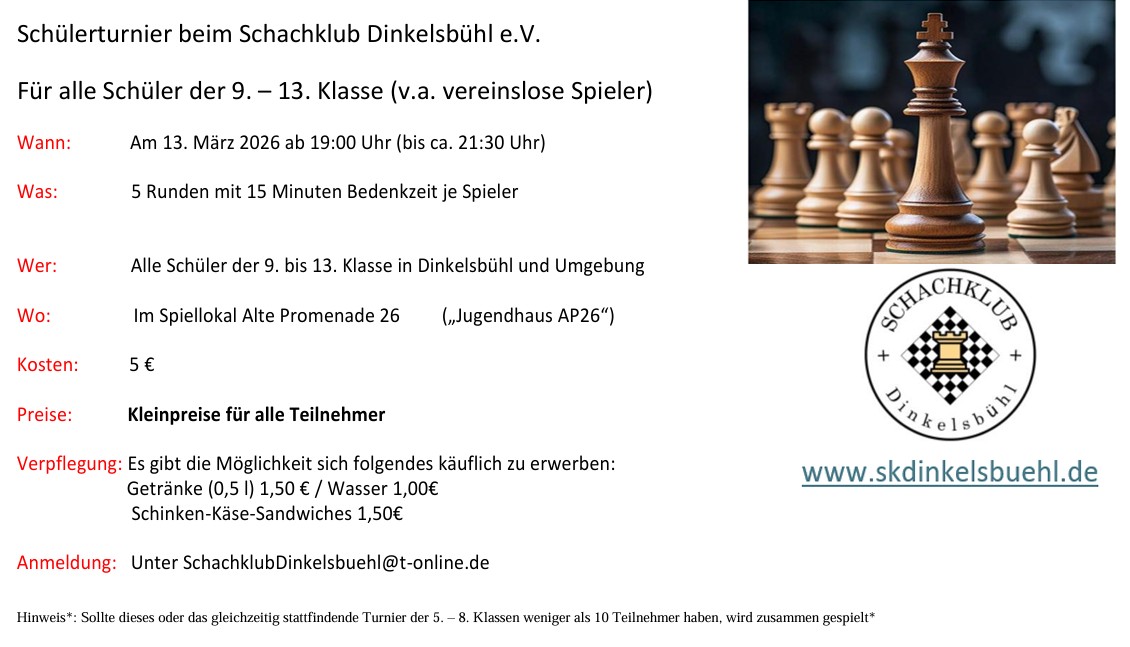 Vom Dinkelsbühler Verein traten 12 Spieler an, in der Gruppe -G- konnte Nicolas Jünemann den 6.Platz erkämpfen.
